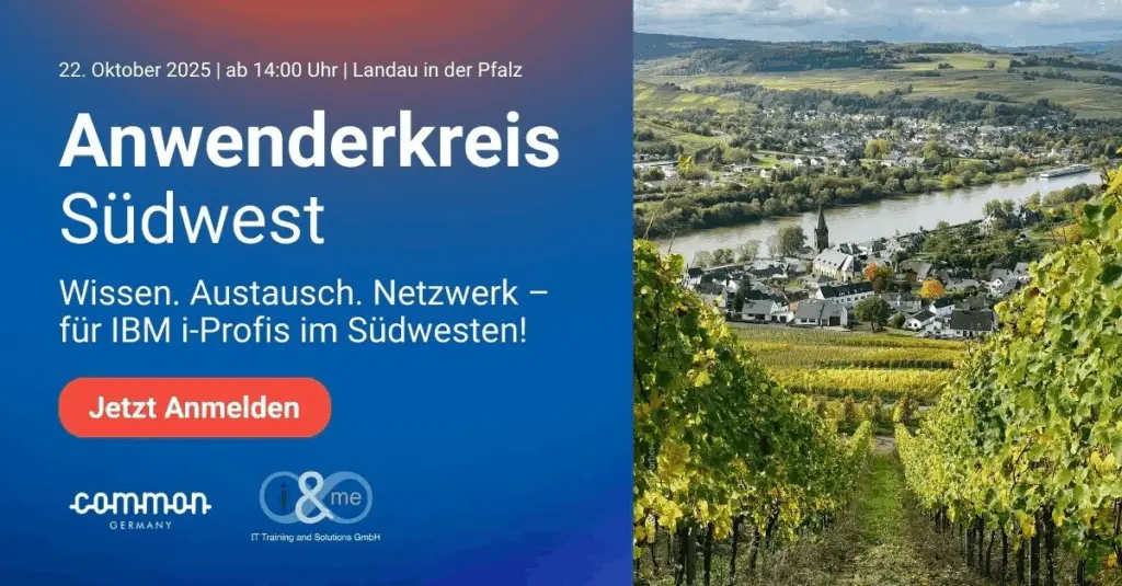 Am 04.02.2026 dreht sich in Landau beim Common AWK Südwest alles um das Thema Sicherheit auf und für IBM i Nach dem unerwartet hohen Zuspruch auf unseren ersten Common Anwenderkreis Südwest im Oktober 2025, freuen wir uns alle schon sehr auf Ihren Besuch im schönen Landau in der Pfalz am 4. Februar. SICHERHEIT Darum dreht […]